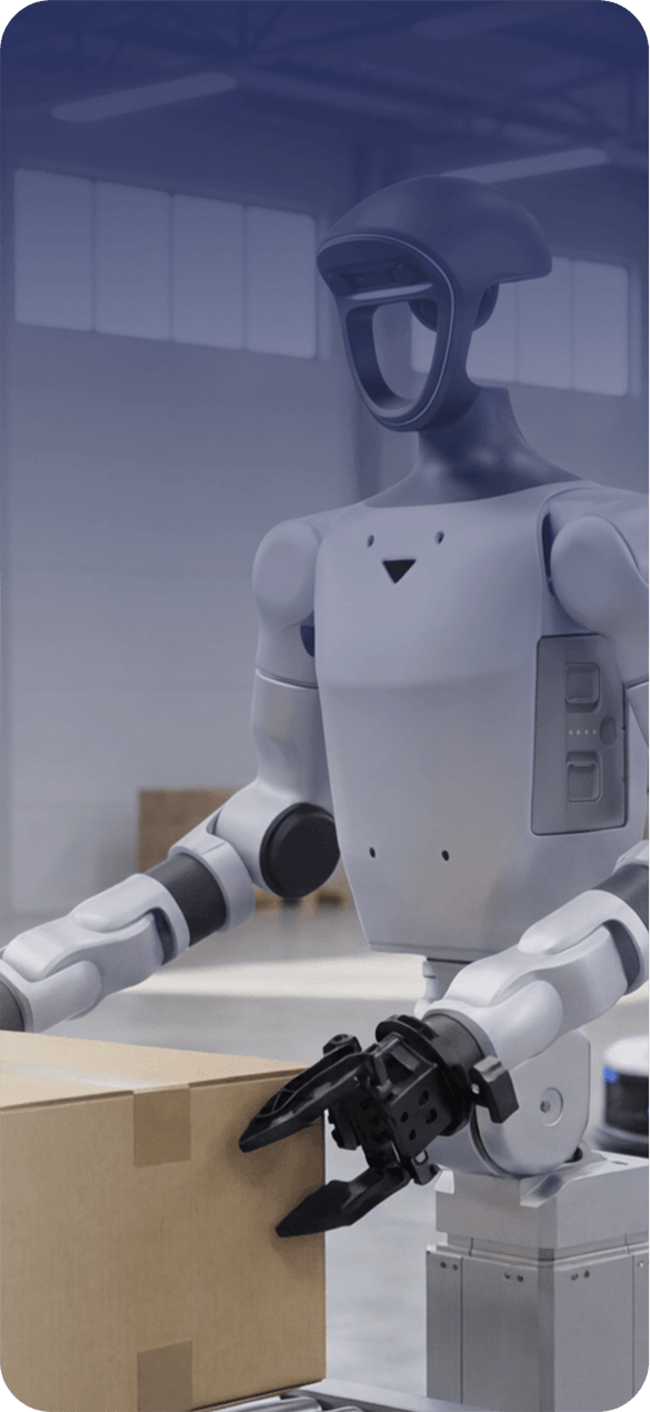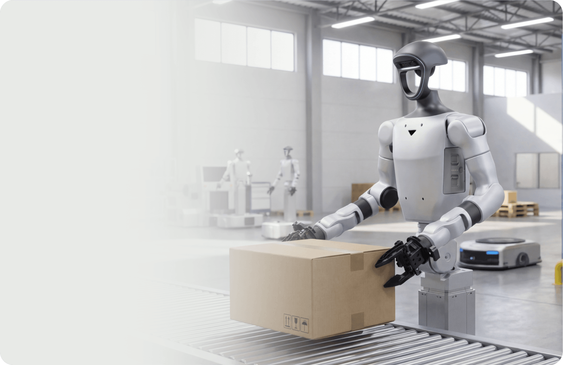 Multiple proprietary humanoid embodiments, featuring in-house actuators, gearboxes, encoders, and sensors.