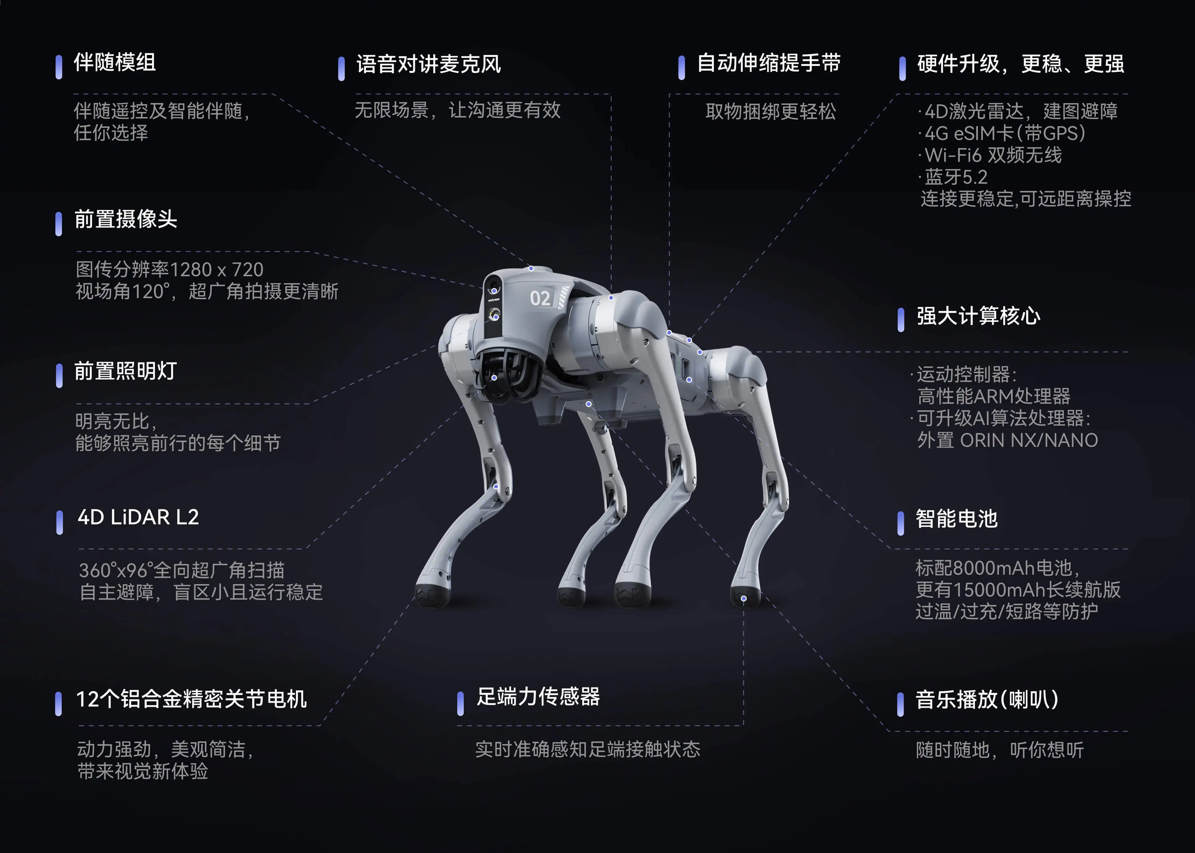 [4] 8核高性能CPU: 能够支持更多模式,如前沿模式、AI模式、3D激光建图等