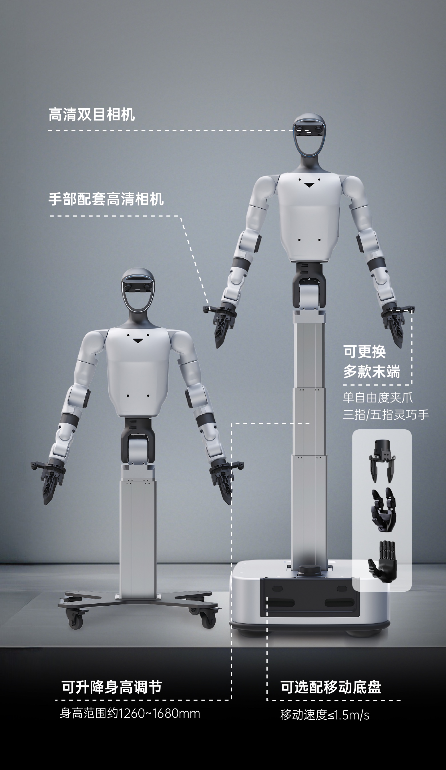 可选二指夹爪/三指灵巧手(无触觉)/
