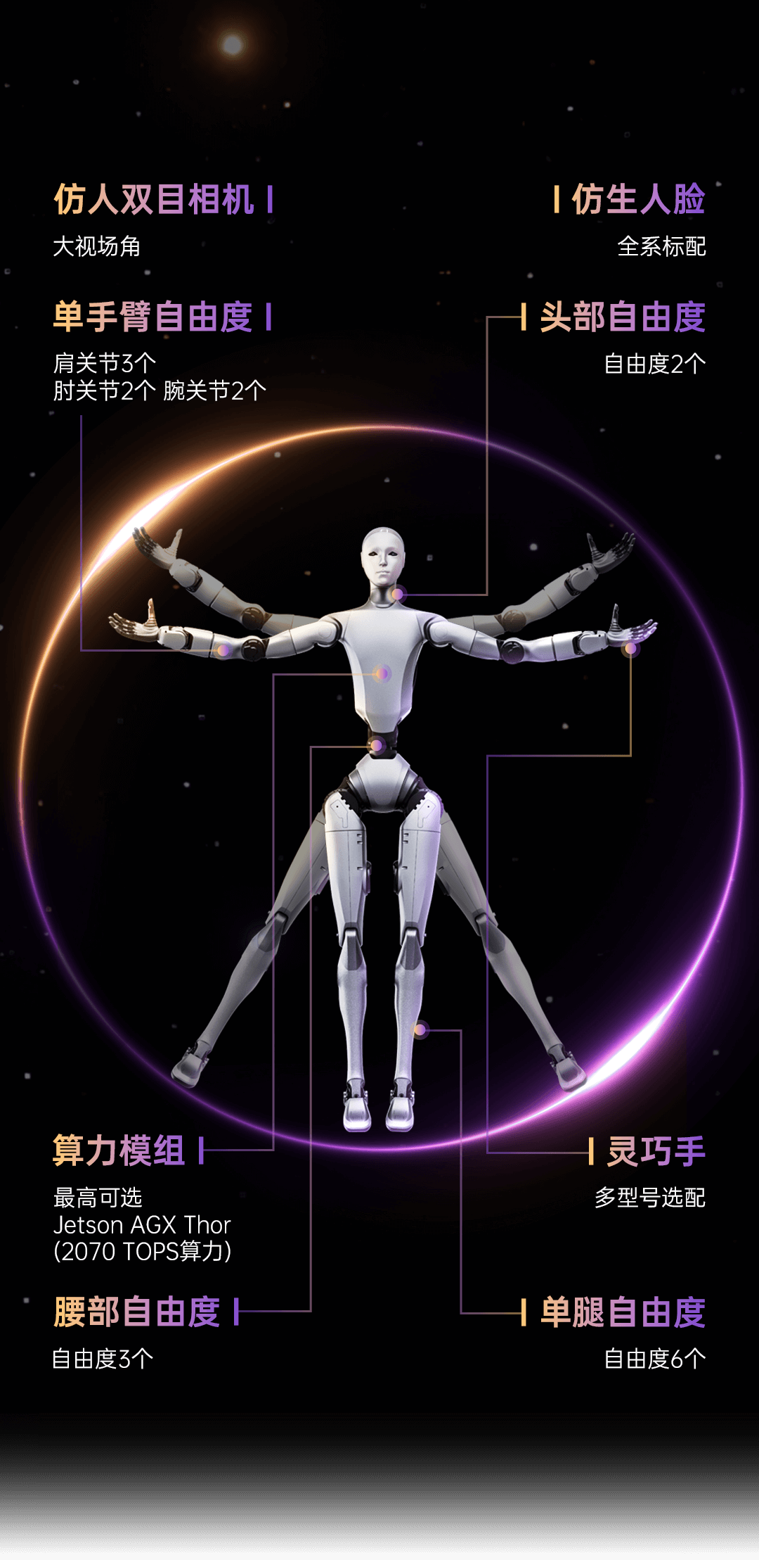 31自由度实时响应,关节扭矩最大可达360N.m,精准复现复杂高动态动作,通过OTA实现算法持续迭代进化。