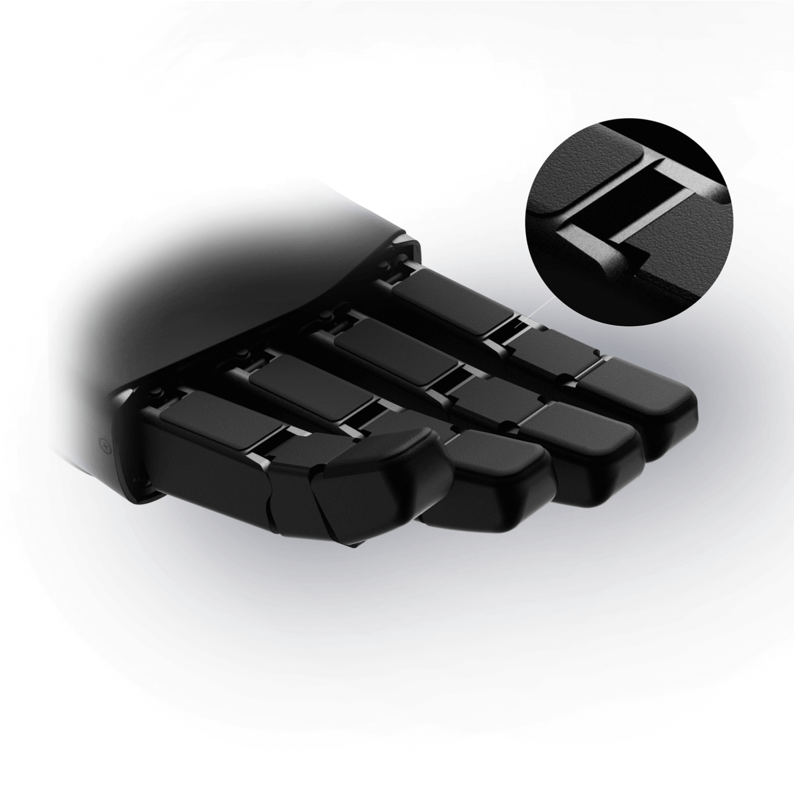 This enables a smoother and more fluid grasp, preventing joint corners from getting stuck on objects.