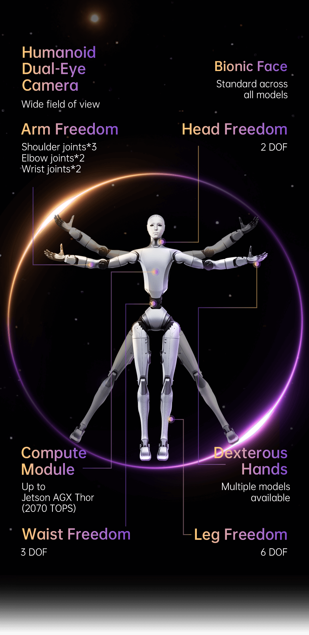 Powered by a 2070 TOPS chip, it supports diverse intelligent models, enabling multiple work scenarios and pushing humanoid robot boundaries.